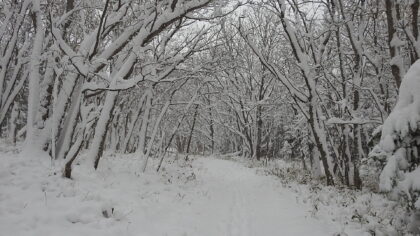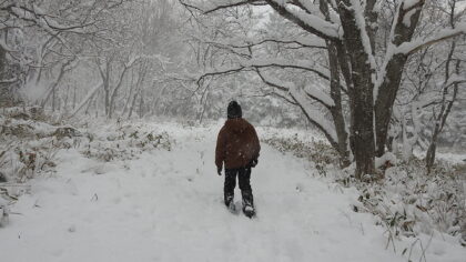 スタッフは散策者の方々が道に迷わないよう、散策路に足跡をつけに行きました。